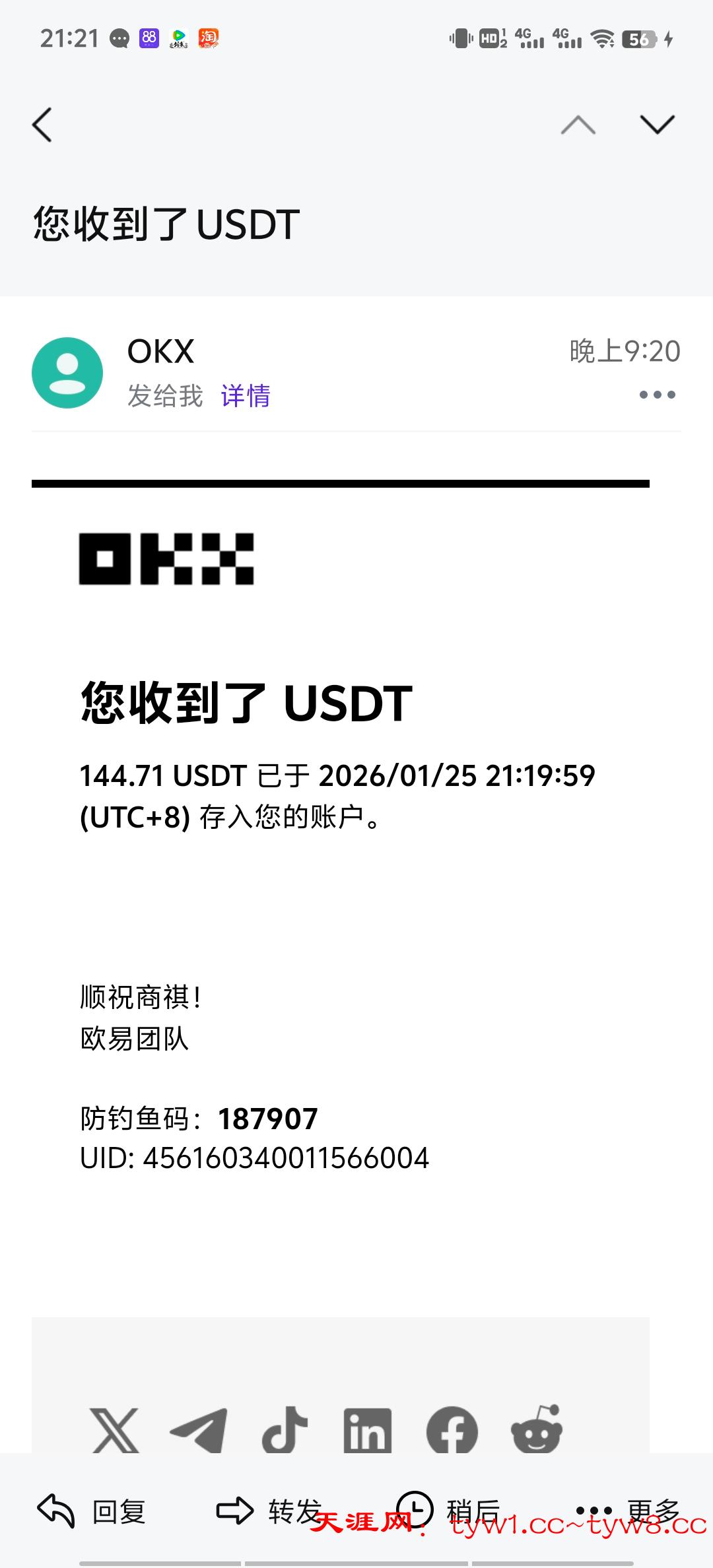返现到账感谢天涯