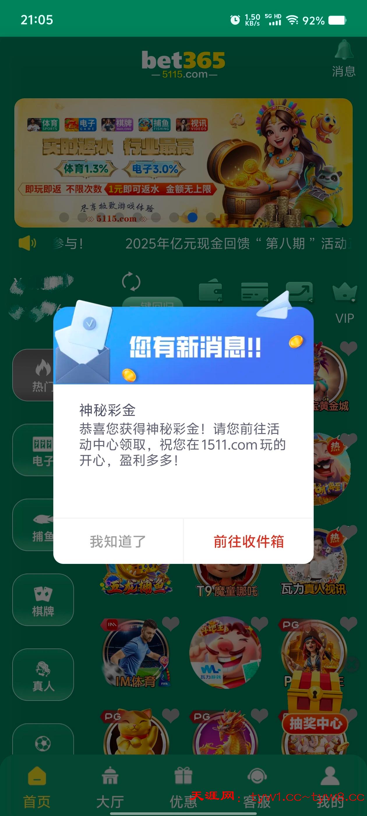 有这条站内信,但是没有彩金