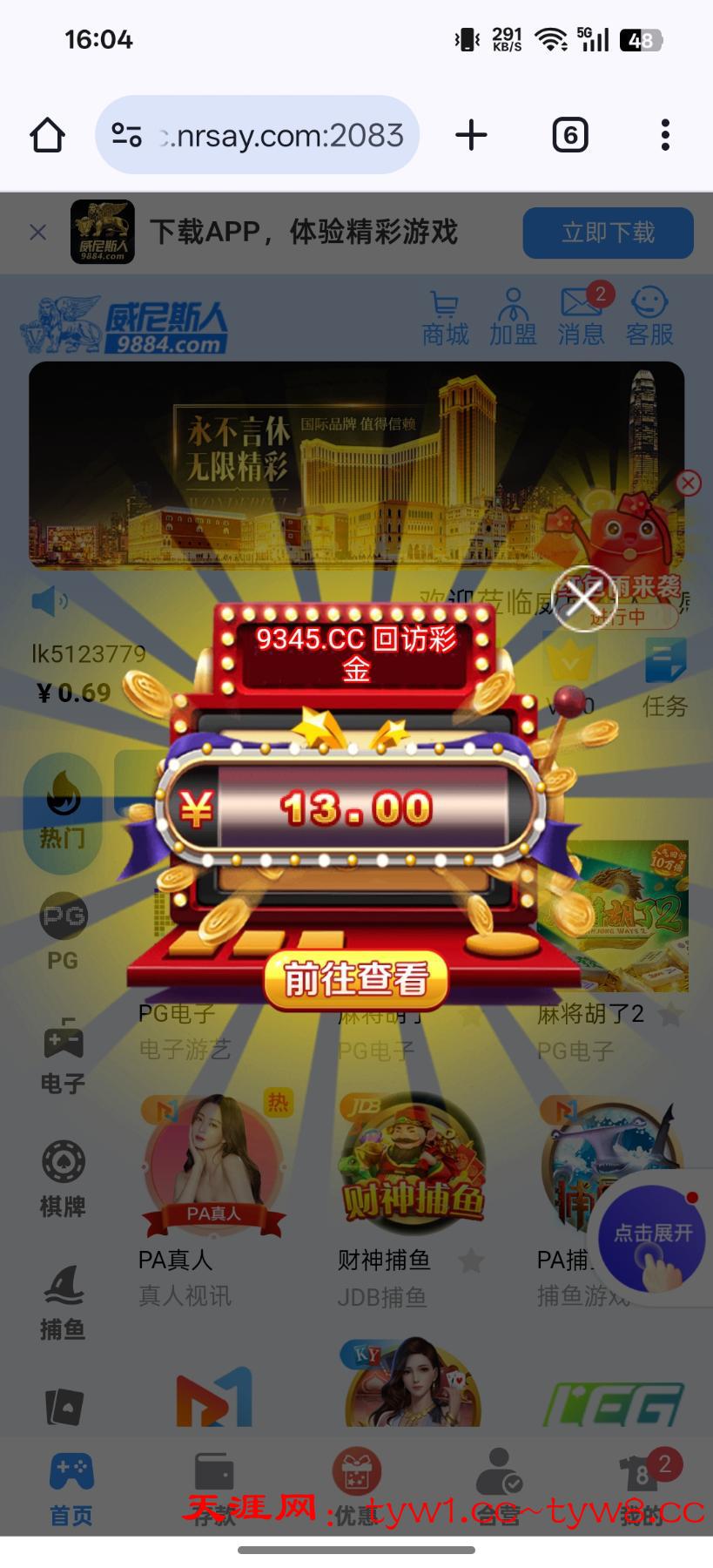 登录送回馈彩金,我没有充值过,
