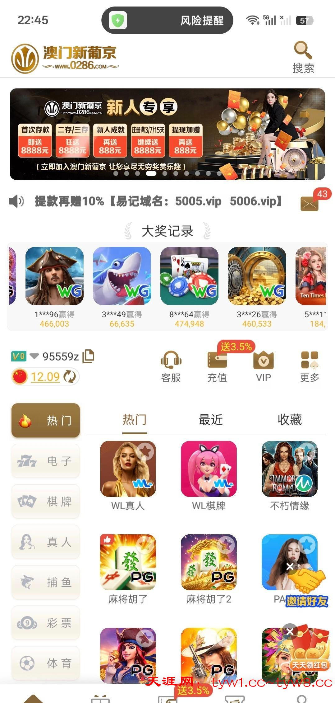 接到电话,找客服送了12,漏接电话的可以去看看,0286.com