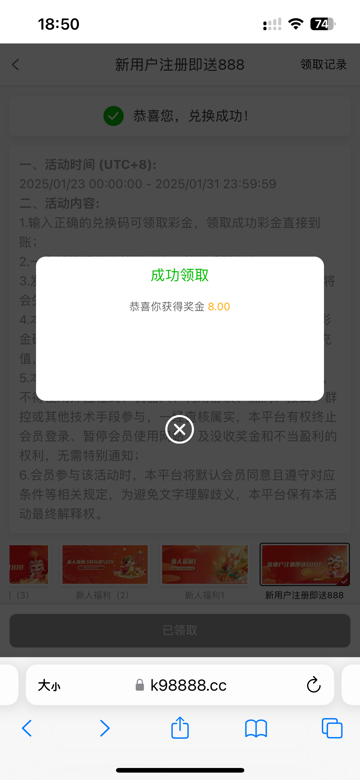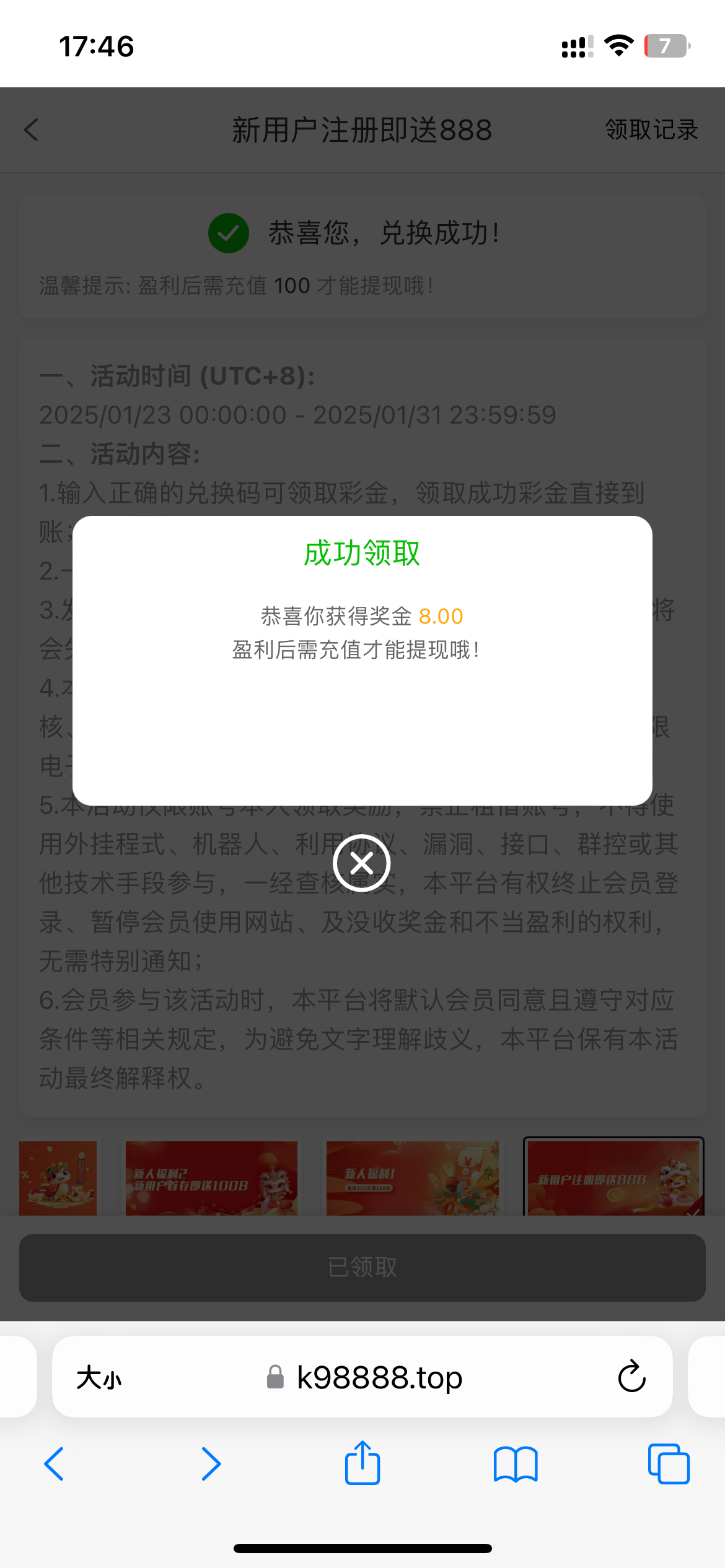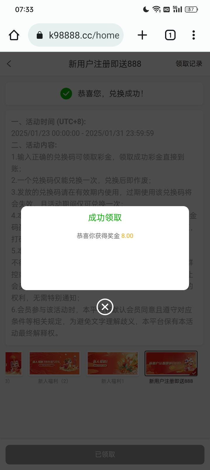 领了8元彩金
