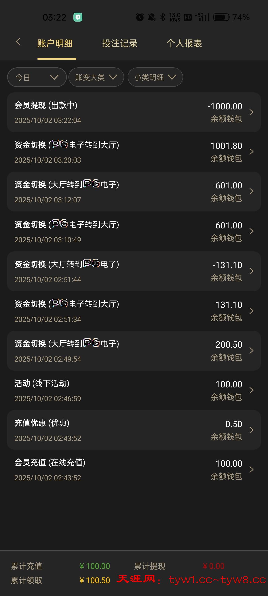 1+1得吃,最高1000,流水没够,600提了,女王有点水的,谢谢天涯