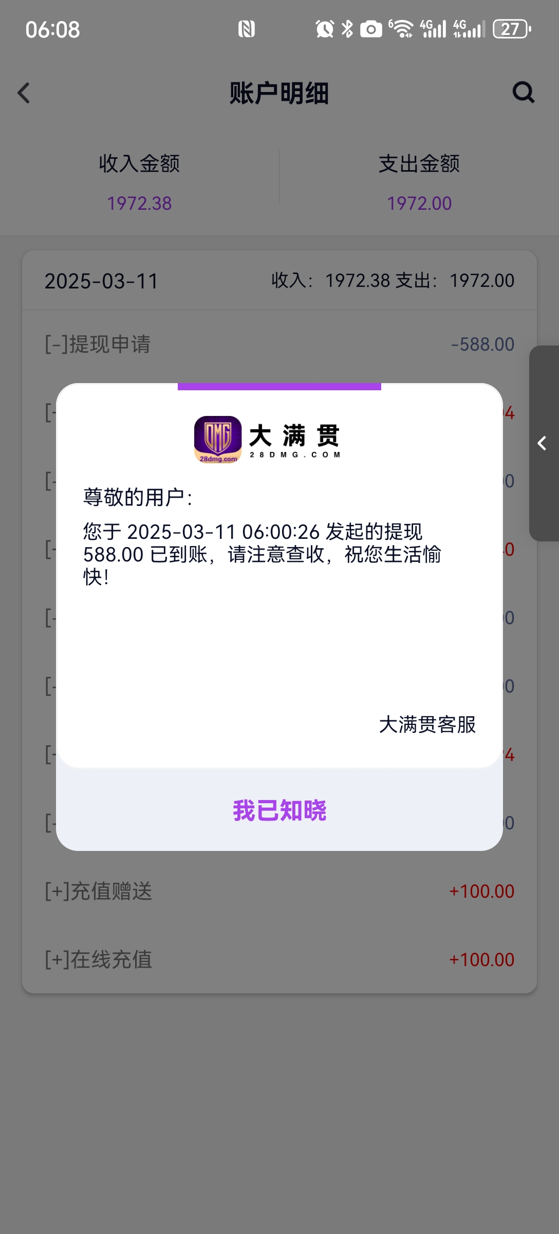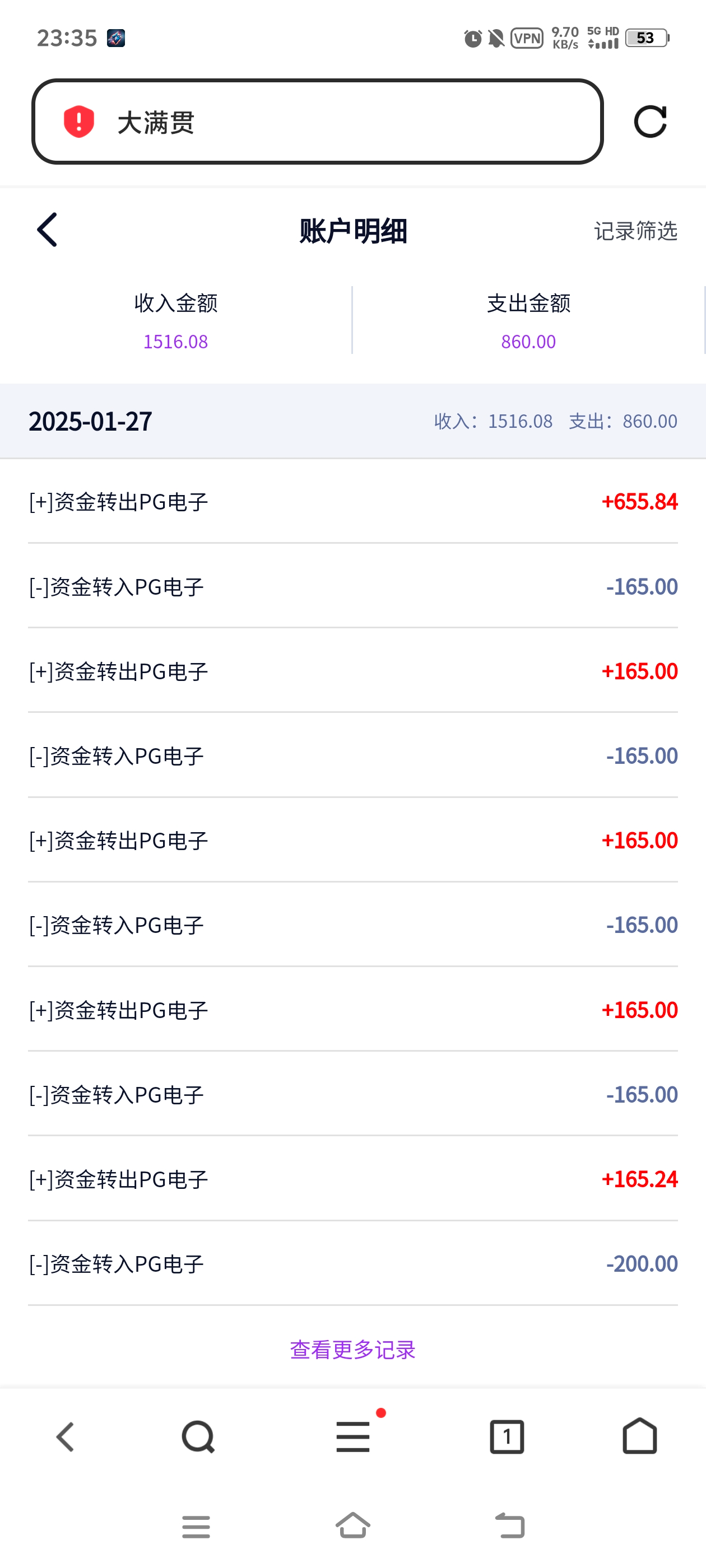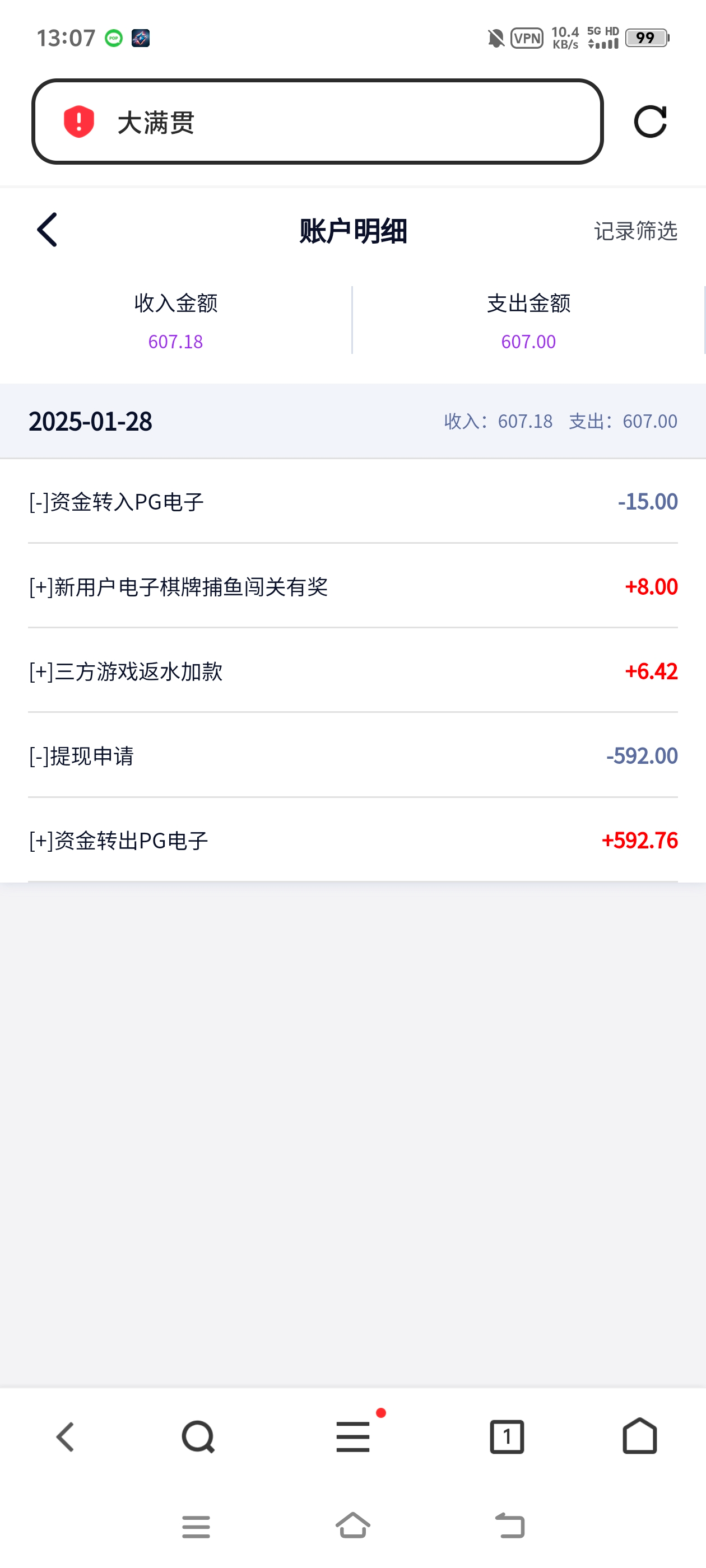 大满贯单笔提款26W已到账