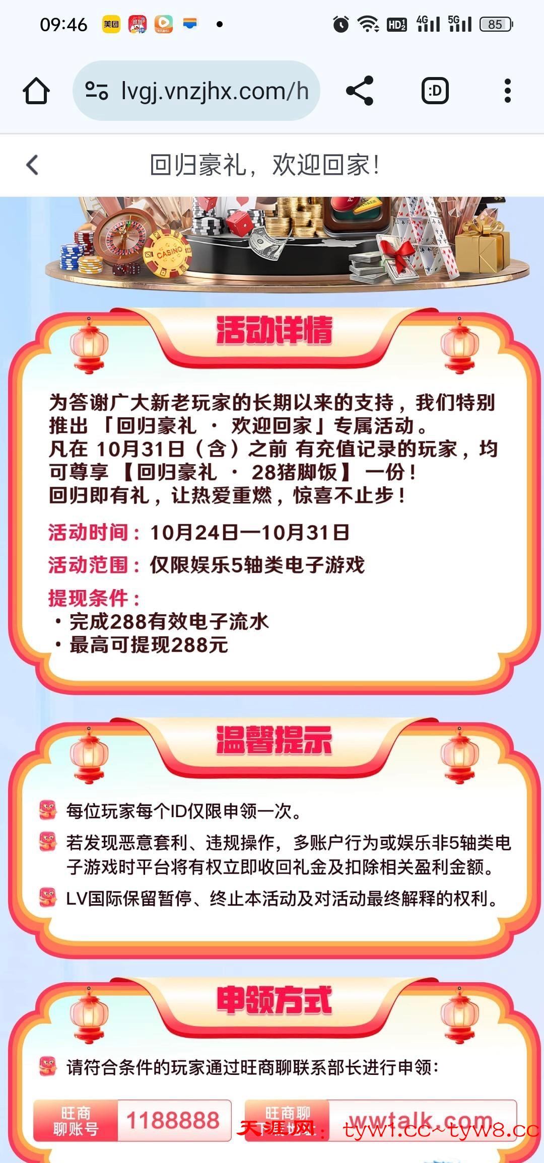 之前有充值过的,可以申请28回归彩金,2点登记的,5点才送的,没打出来链接lv9001.com