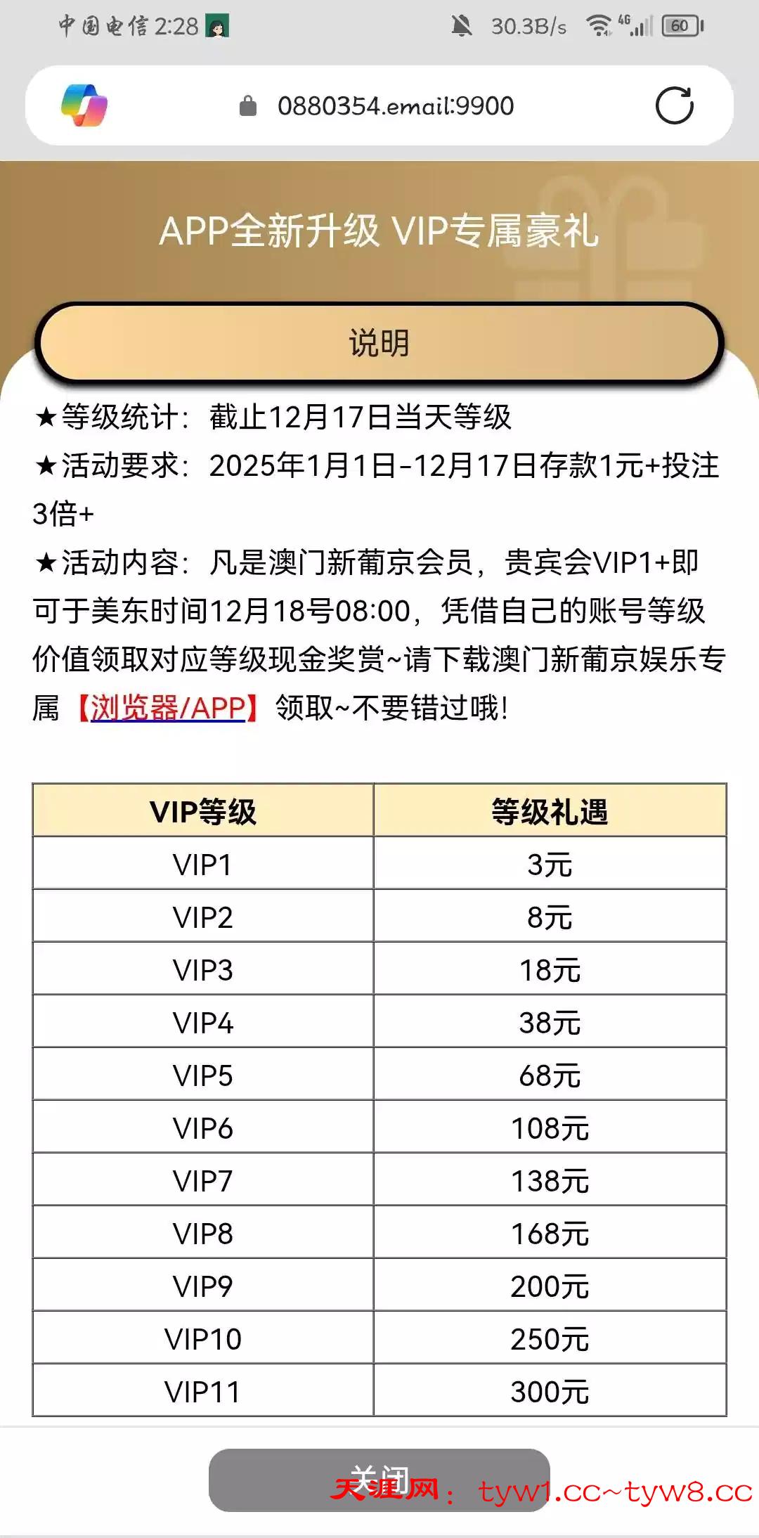 以前玩过有vip等级的今年没充值的去充几块钱,今天最后一天,不然到时候又拍大腿