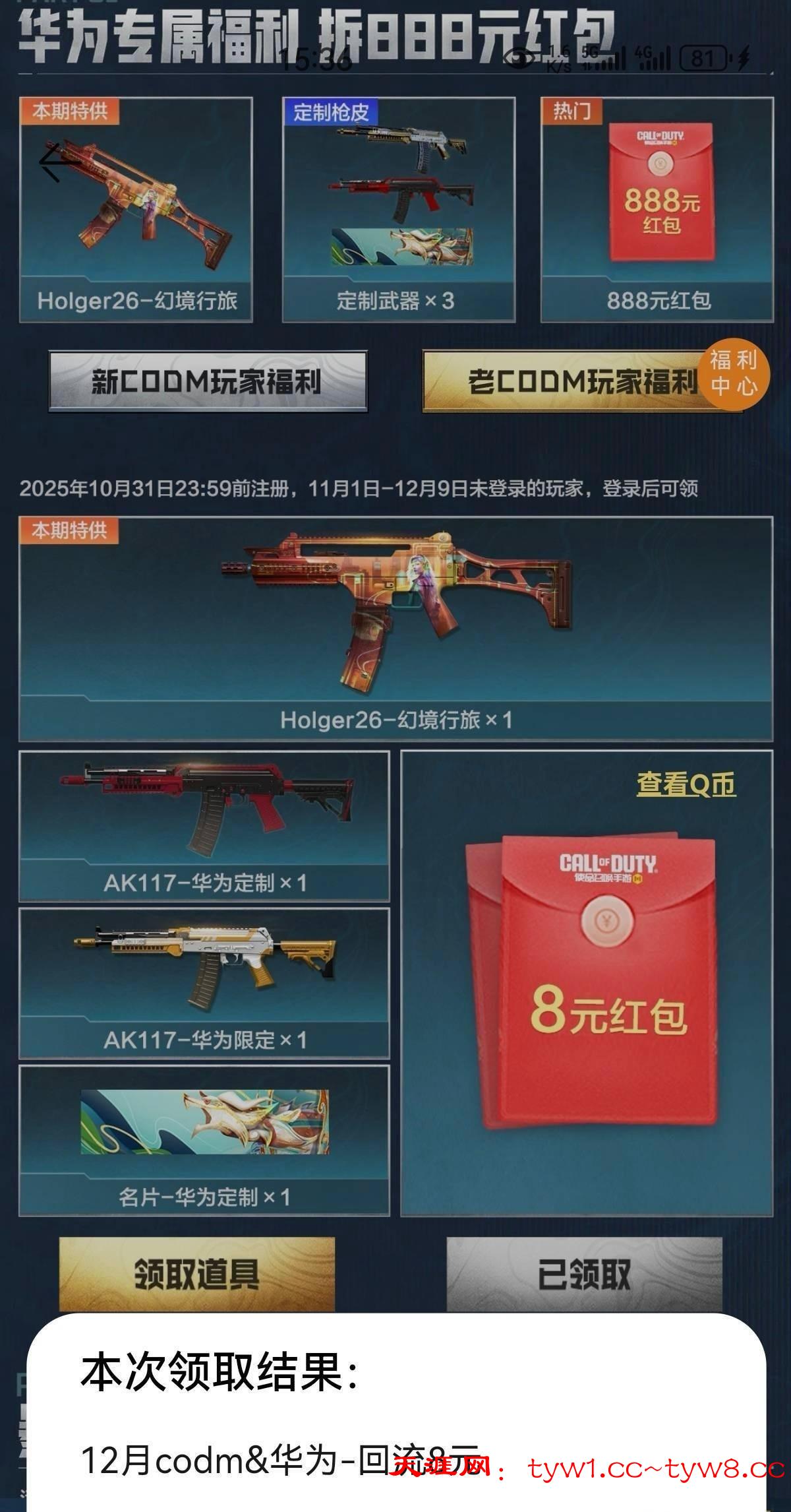 使命召唤登录回归1号8块