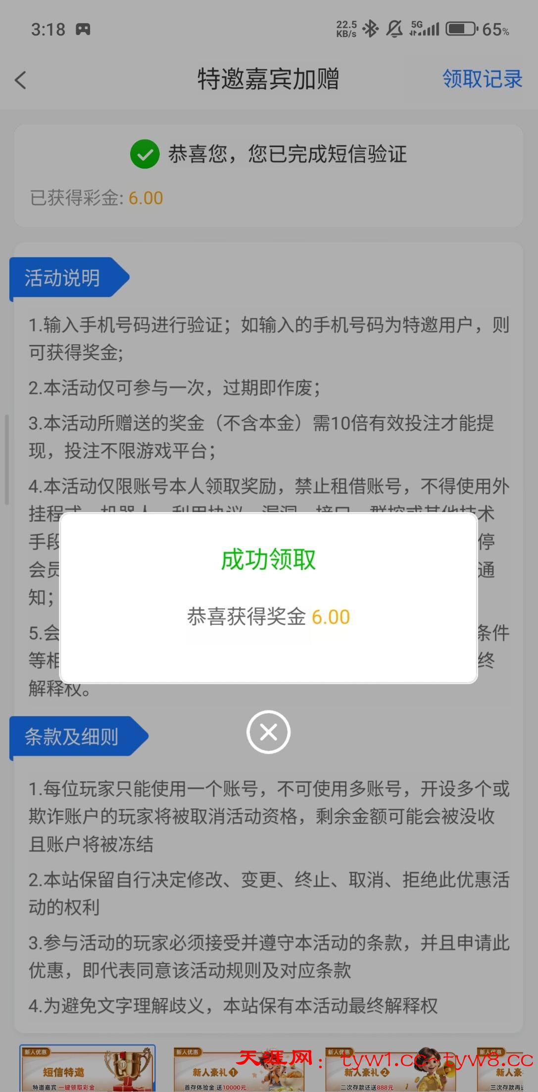 短信特邀送6,你们可以去试试是不是特邀