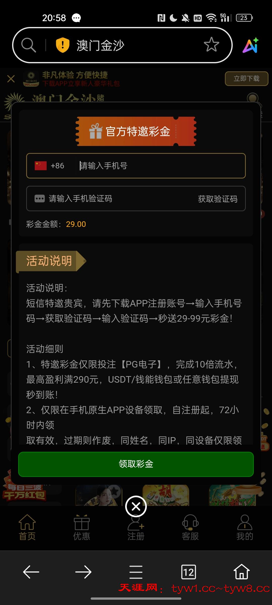 热门那里找到特邀送29.输入手机号获取验证码.