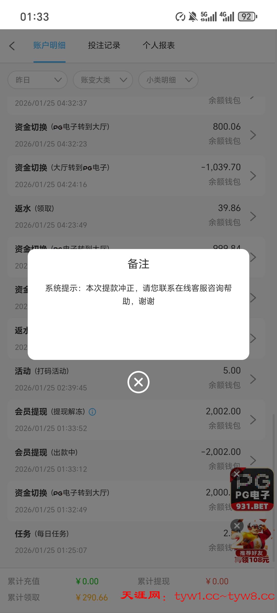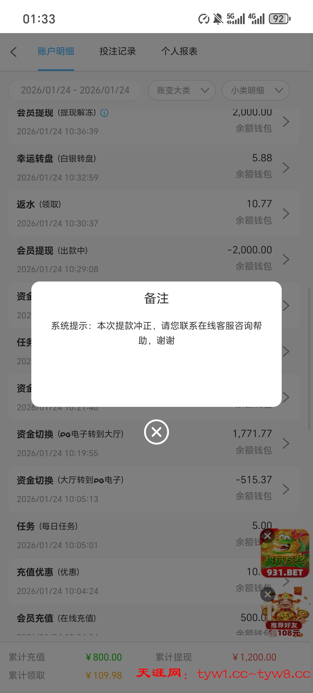 死妈931黑台上500裸打下2000卡两天 下了五六次 问就是注单异常审核中  输到剩500只下本金都不给下  输完今天活动送的几十下200都不给下 依旧注单异常审核 真鸡巴牛掰   这个台玩了两个月赢了差不多两万吧之前下分都是几分钟就到账  现在直接开黑一毛都不给下