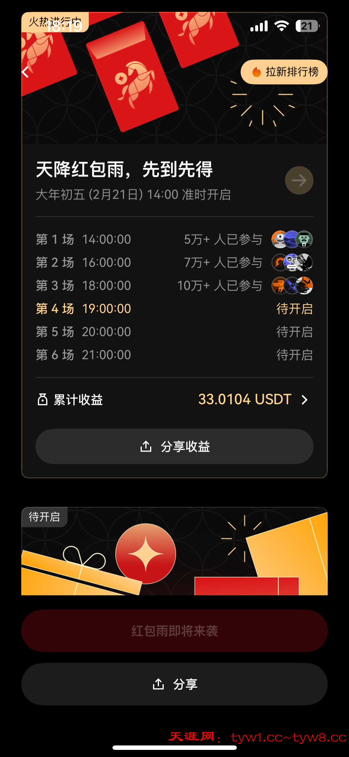 明天14点开始oe有6场红包雨,不知道是不是要报名之后明天才能抢 入口主页