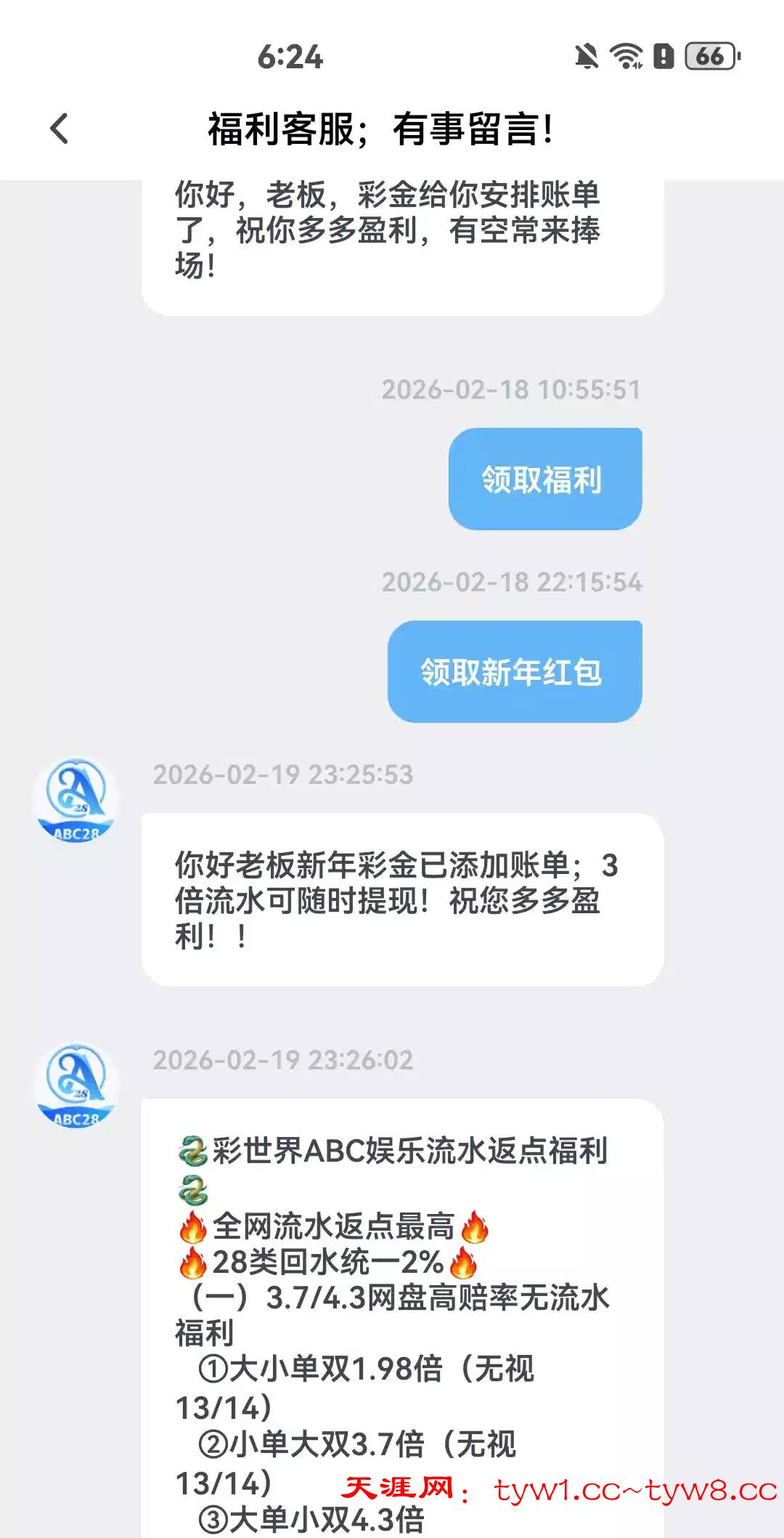 闲的无聊找客服说领取新年红包,18号发的信息,刚刚上号有58,昨天送的,兄弟们都去试试,我v1账号,差不多小半年没充值了 地址 abc28.xyz
