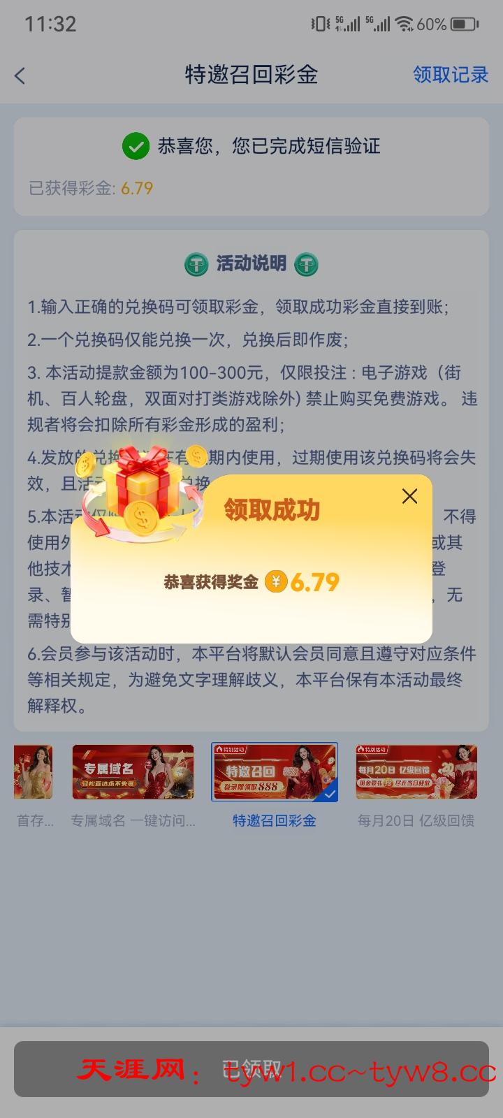 特邀彩金验证短信随机送