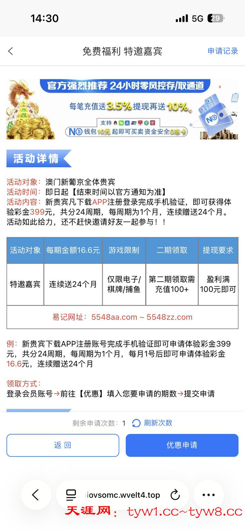 下载APP注册登入完成手机号验证到优惠里申请16.6彩金,彩金审核会有点久,盈利满100出款