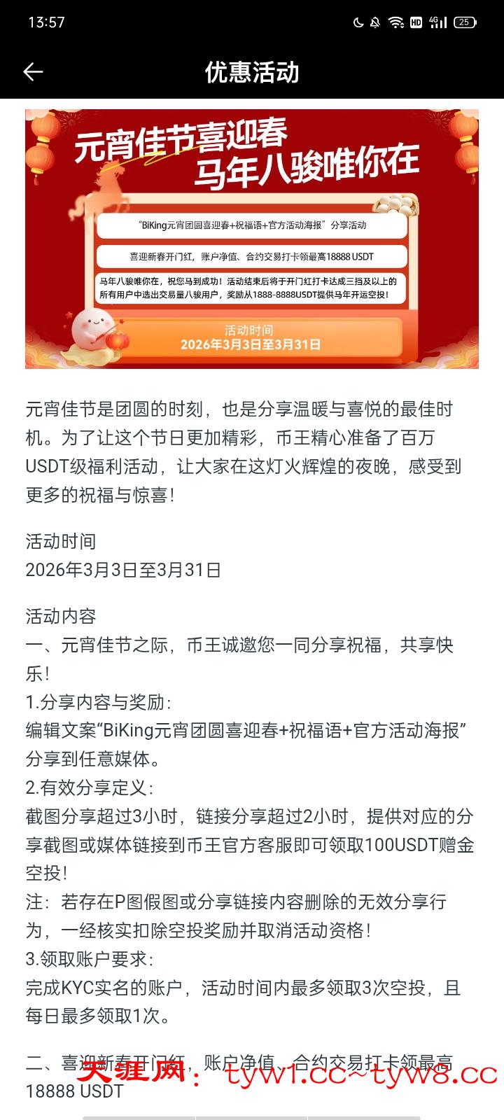币王元宵节送300u体验金,每天分享朋友圈可以领一次可领三次