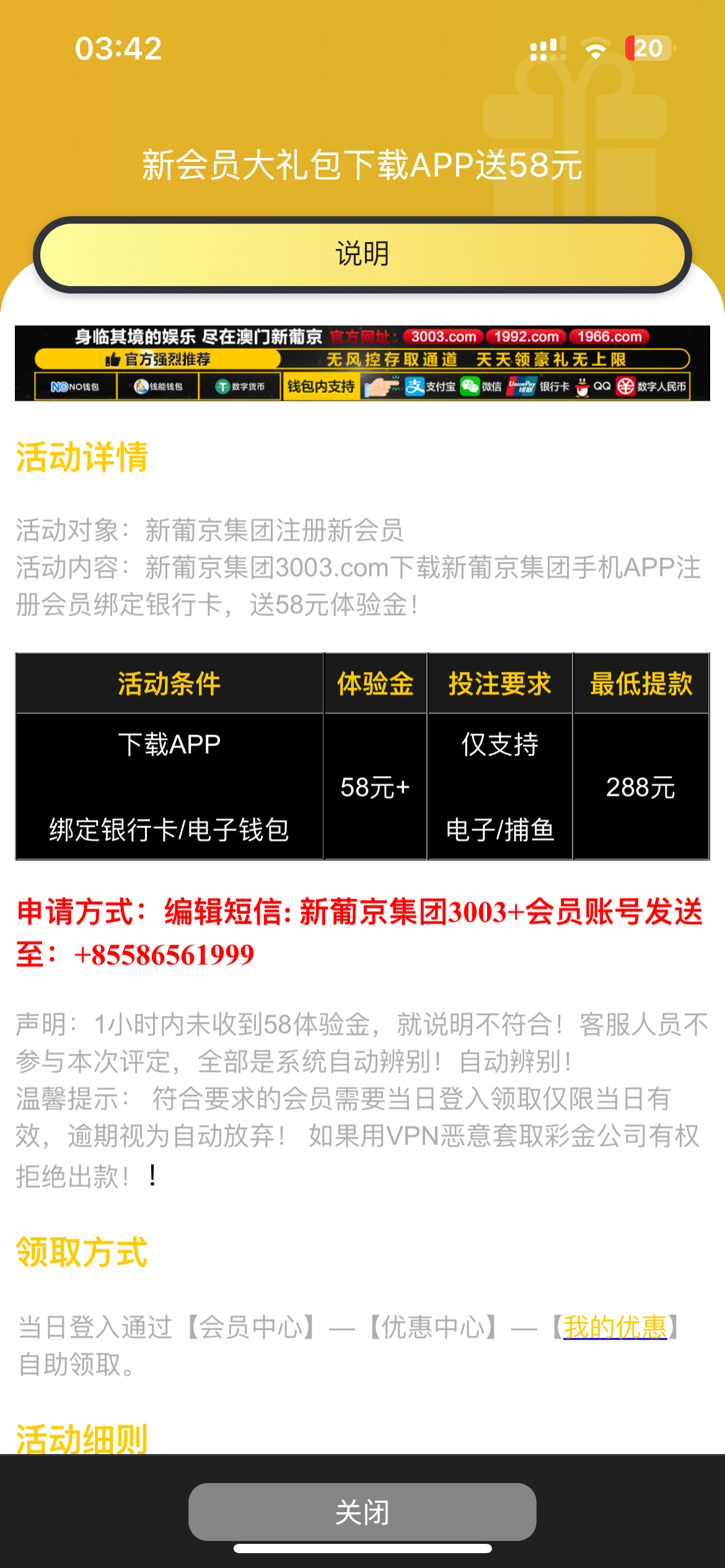 ip干净的去 这个以前好像送18 现在58 我没有打出来 限制及如何领取彩金看下图