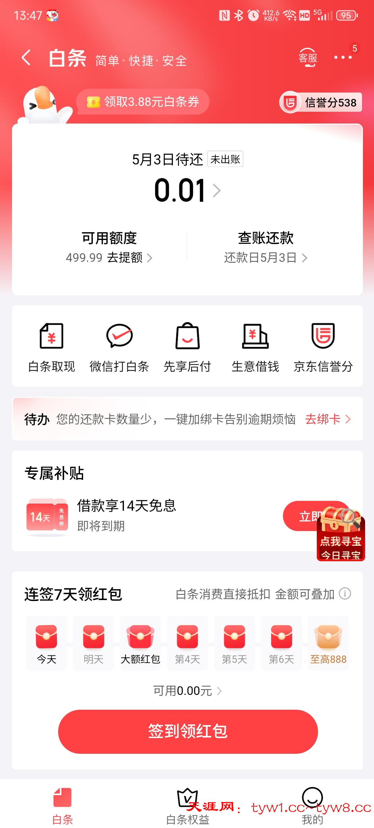 500额度,负债0.01了,刚刚买火车票花了一分钱
