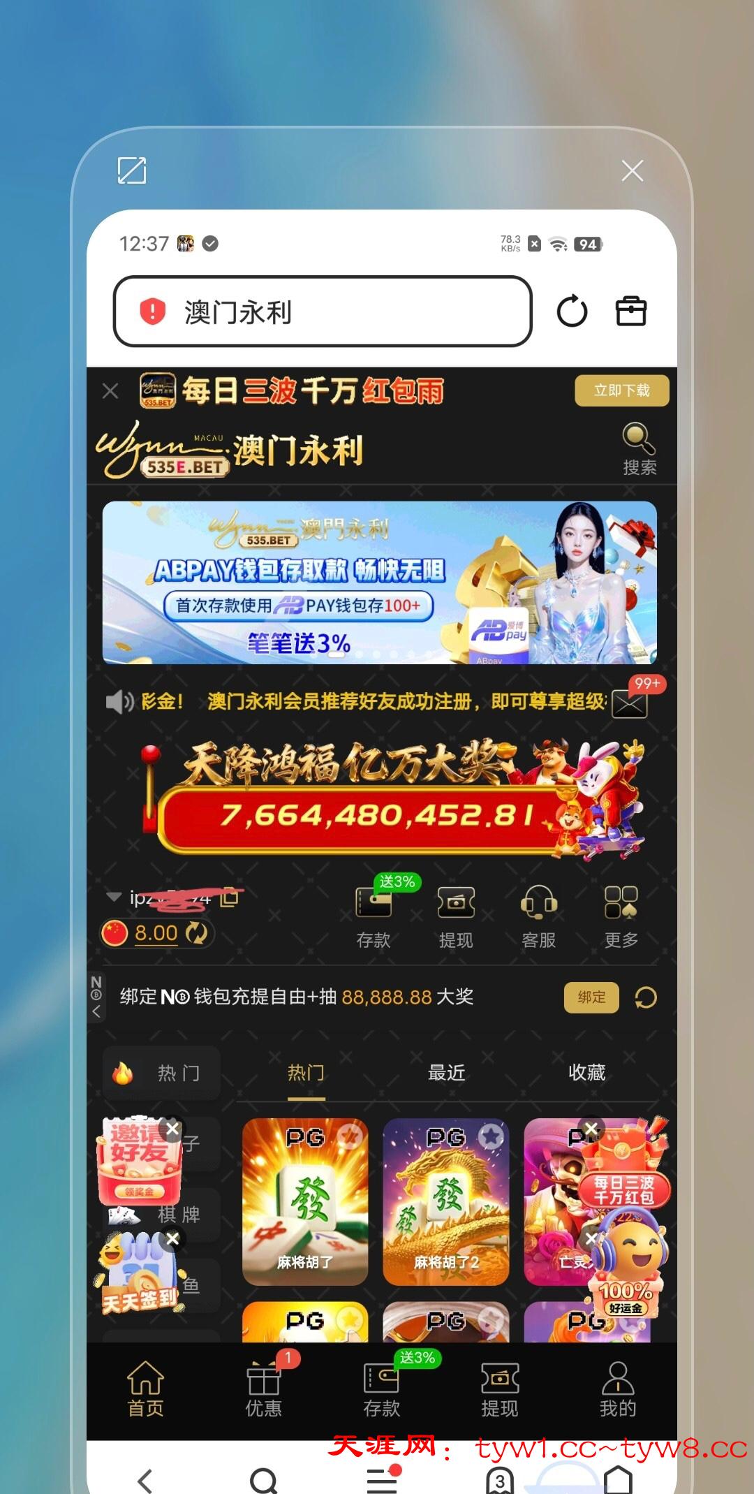 送了8彩金 有的老哥去看看吧