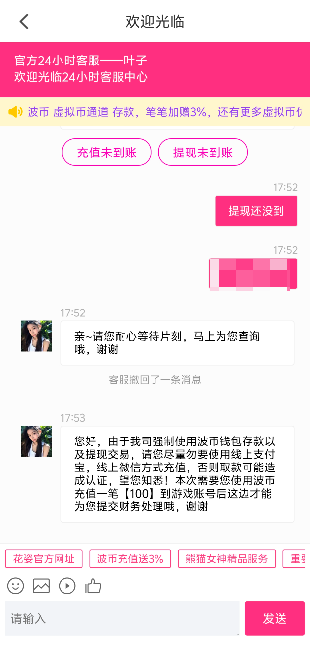 换个直播充 100 对着打把钱提出来