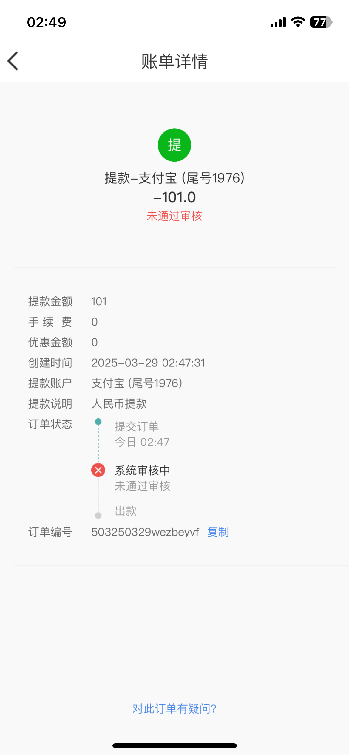77 你脑残吧 我能提我不提吗?他只给提卡 钱包其他的都不给提 支付宝一直说风控 真是个二逼不给提u钱包这些