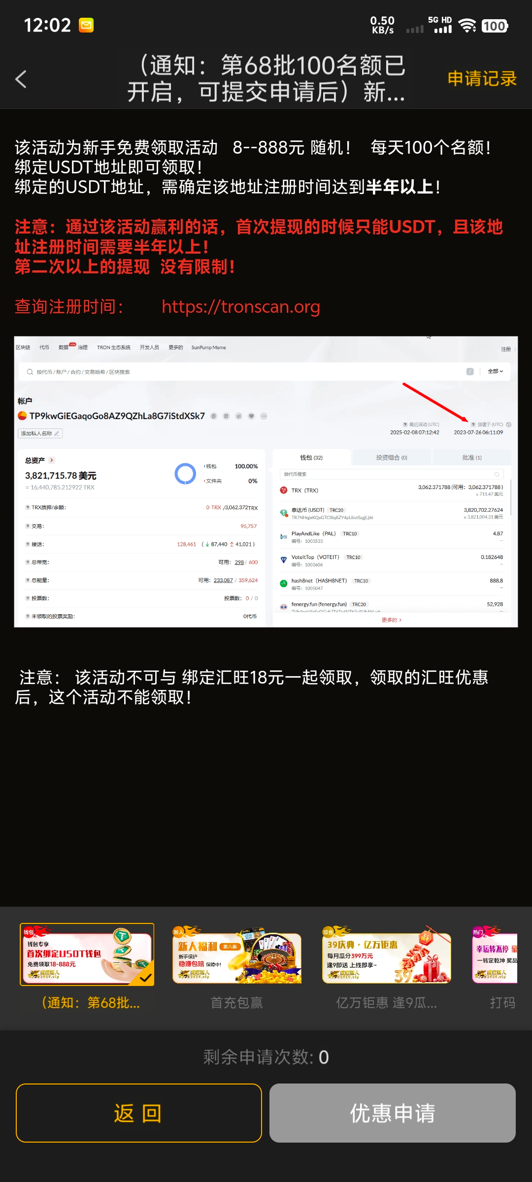 需要绑定半年以上USDT地址
