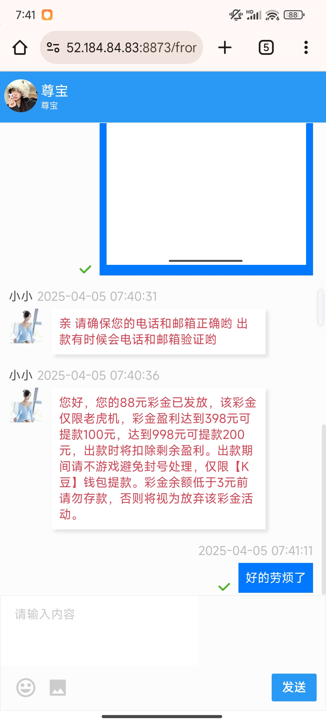 注册完善所有信息,客服申请可以碰瓷