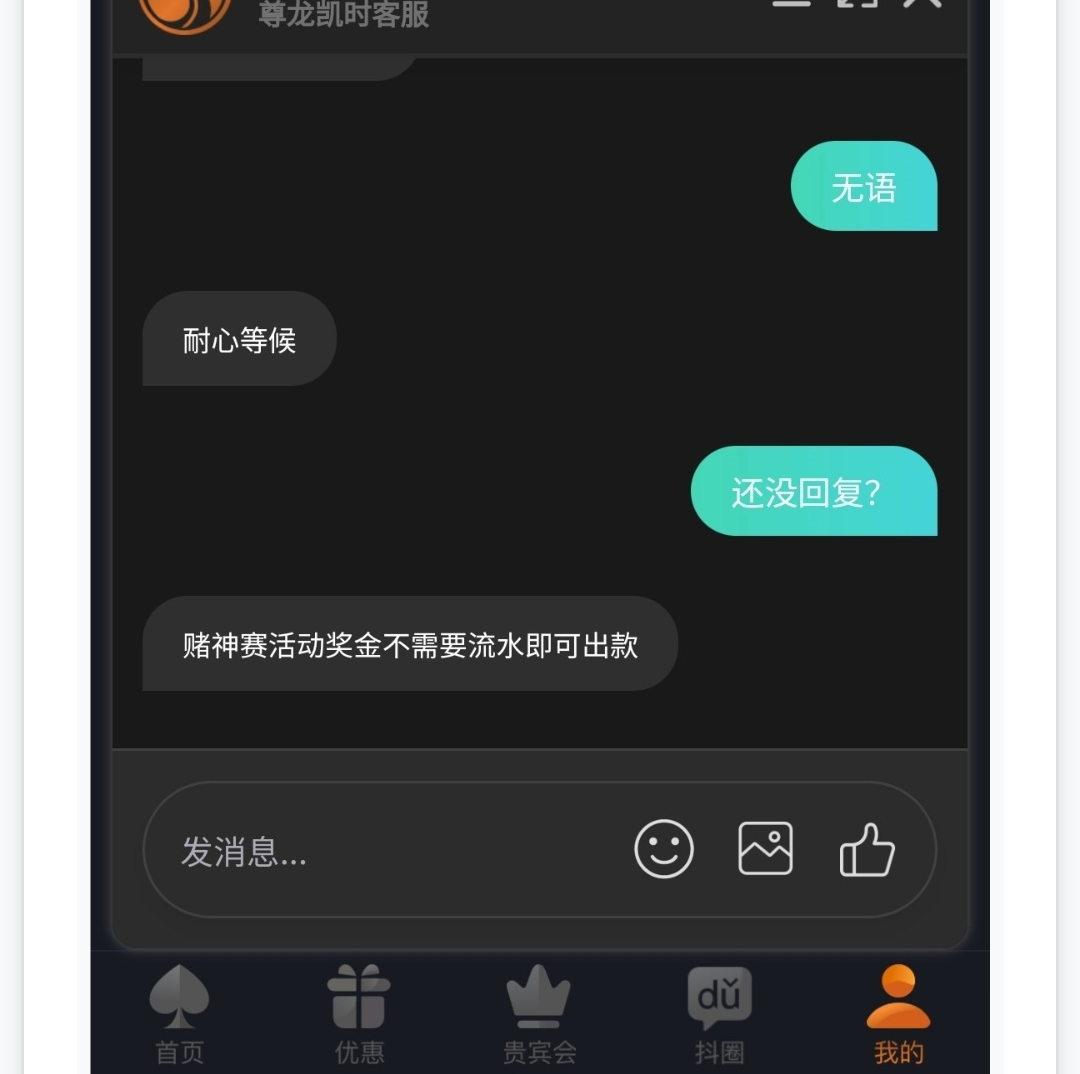 本人以前凯时v3老用户,跟尊龙和并后当时提现故意卡我后来没在这台玩了,去年彩神争霸赛白嫖的彩金客服也找理由不让我提现,输完了又说可以提现了。今年我没领优惠充值玩轮盘每天存100梭哈中了就提现,也不玩其他,赢了几天就黑了。说我23年有笔充值订单没收到。让他们提供证据他们又说太久远查不到记录。尊龙凯时也不封号,真的佩服他们找这种理由你拿他们一点办法都没有。不信的拿账号去问客服。。为什么不说我最近充值提现的也是p图呢??这台黑用户水平太高了这是去年不让我提现的理由