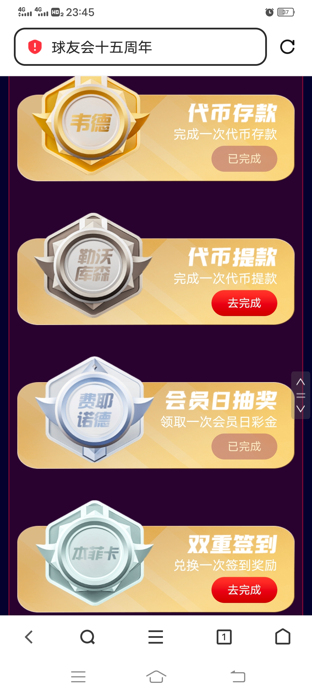 【球友会15周年抽奖 充值过的去】