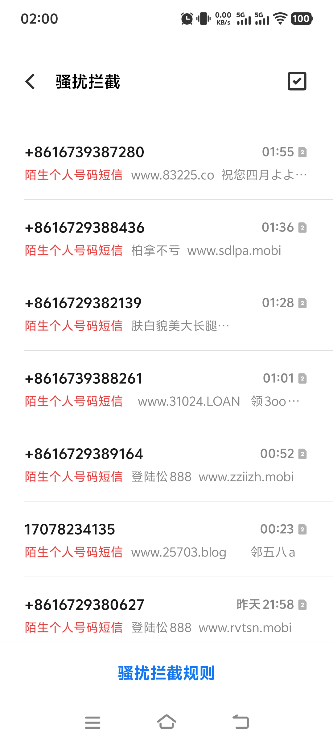这种垃圾短信每天都截拦二三十条以上,烦得要命,有什么办法阻止
