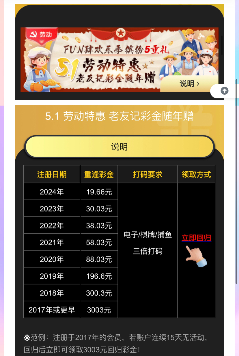 网址 3003.com 15天以上没有投注充值活跃过的兄弟可以上号联系在线客服领回归彩金,按注册年份赠送的,彩金三倍流水,限电子捕鱼棋牌