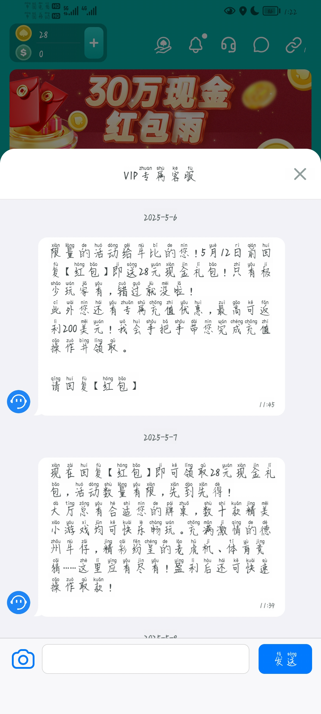 活动是5月12号前回复红包24小时内到,有号的老哥去看看