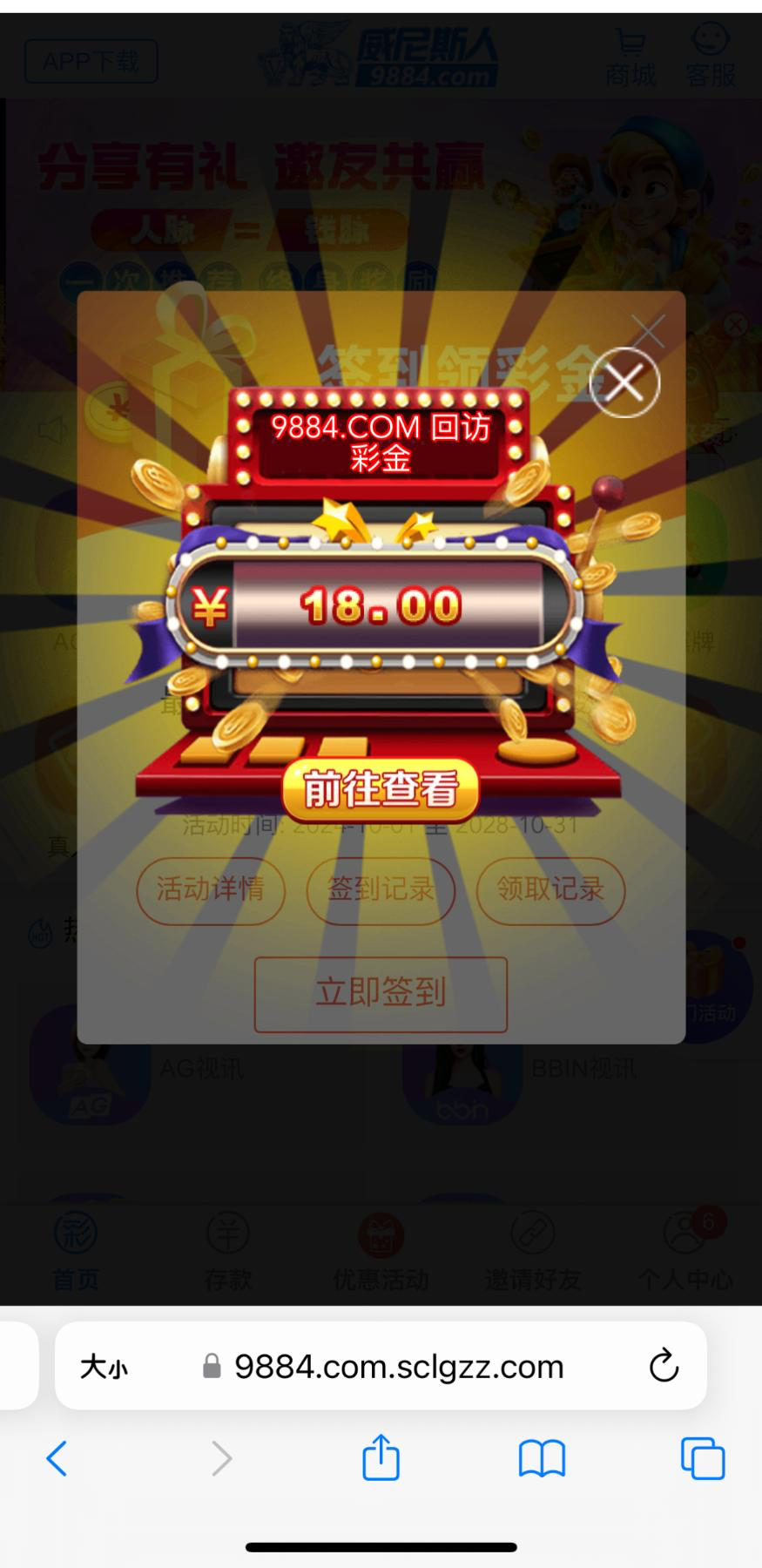 威尼斯人9884 好久没登录了 之前充值过 弹窗领到了18 有号的可以去看看