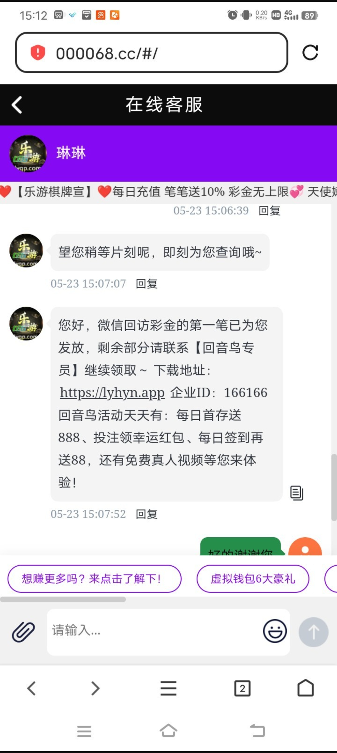 乐游微信回访彩金