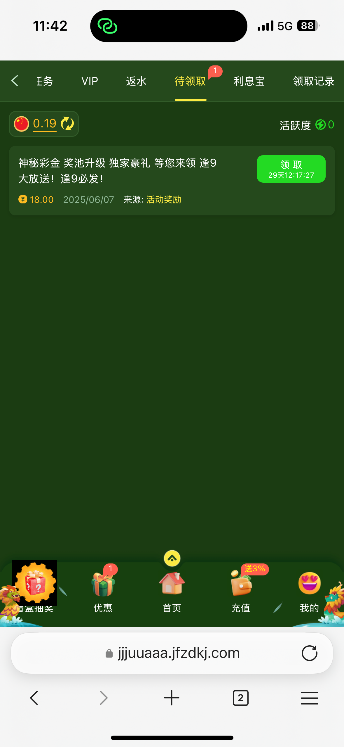 这个要充值的,最近几天输了一千多在这个台子,领了28,死了