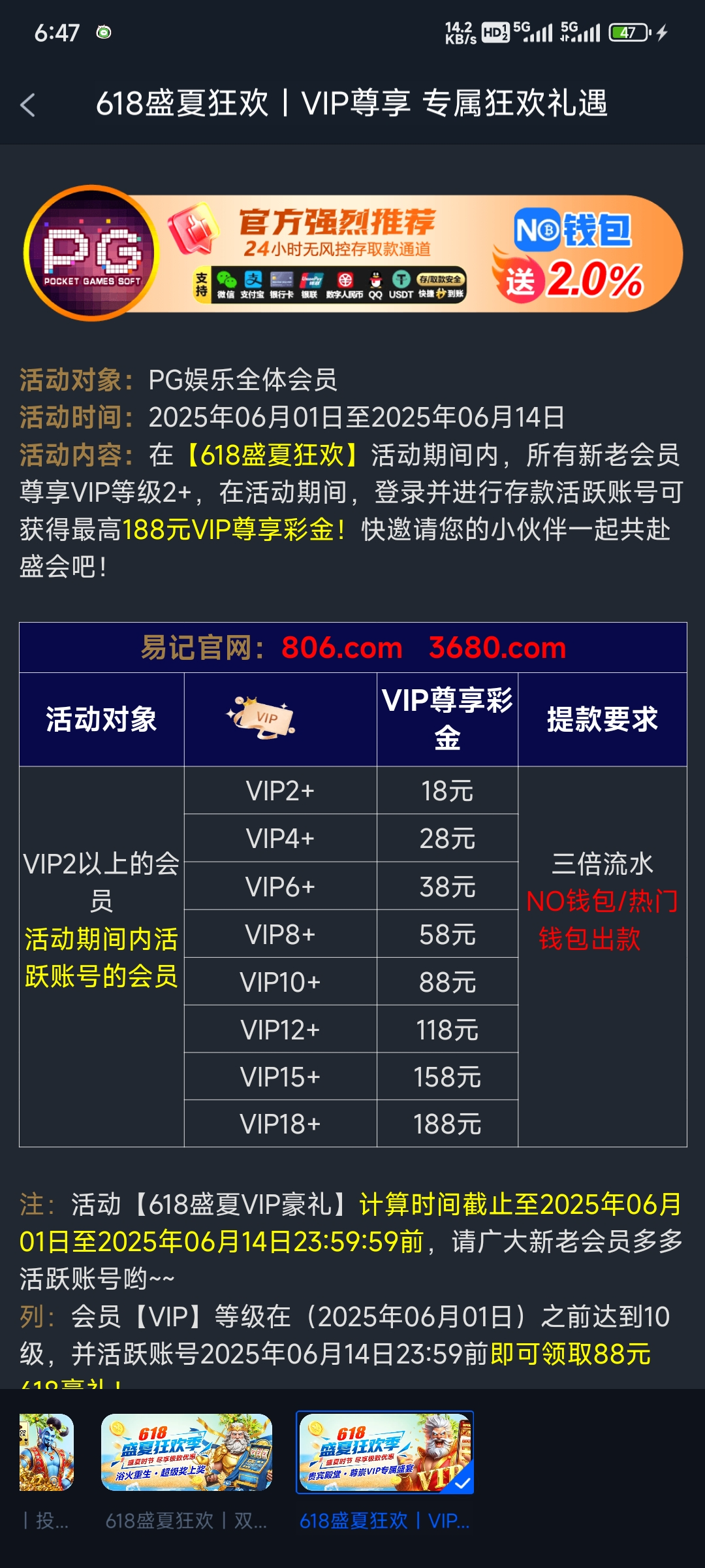 【pg806】—✅—六一八等级彩金