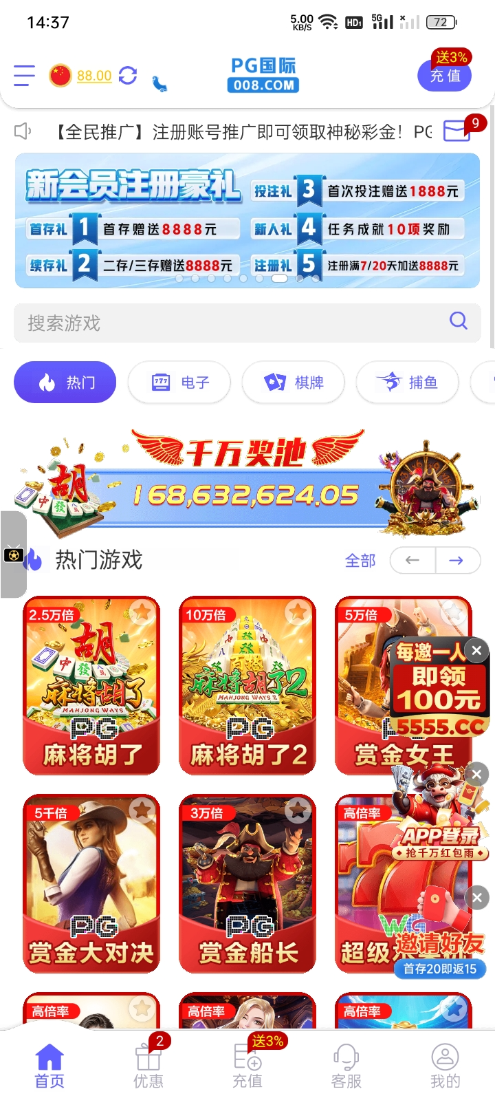 老哥们都去碰碰瓷 用手机号码注册 然后下载app登录 不知道这台怎么样 提现要充值