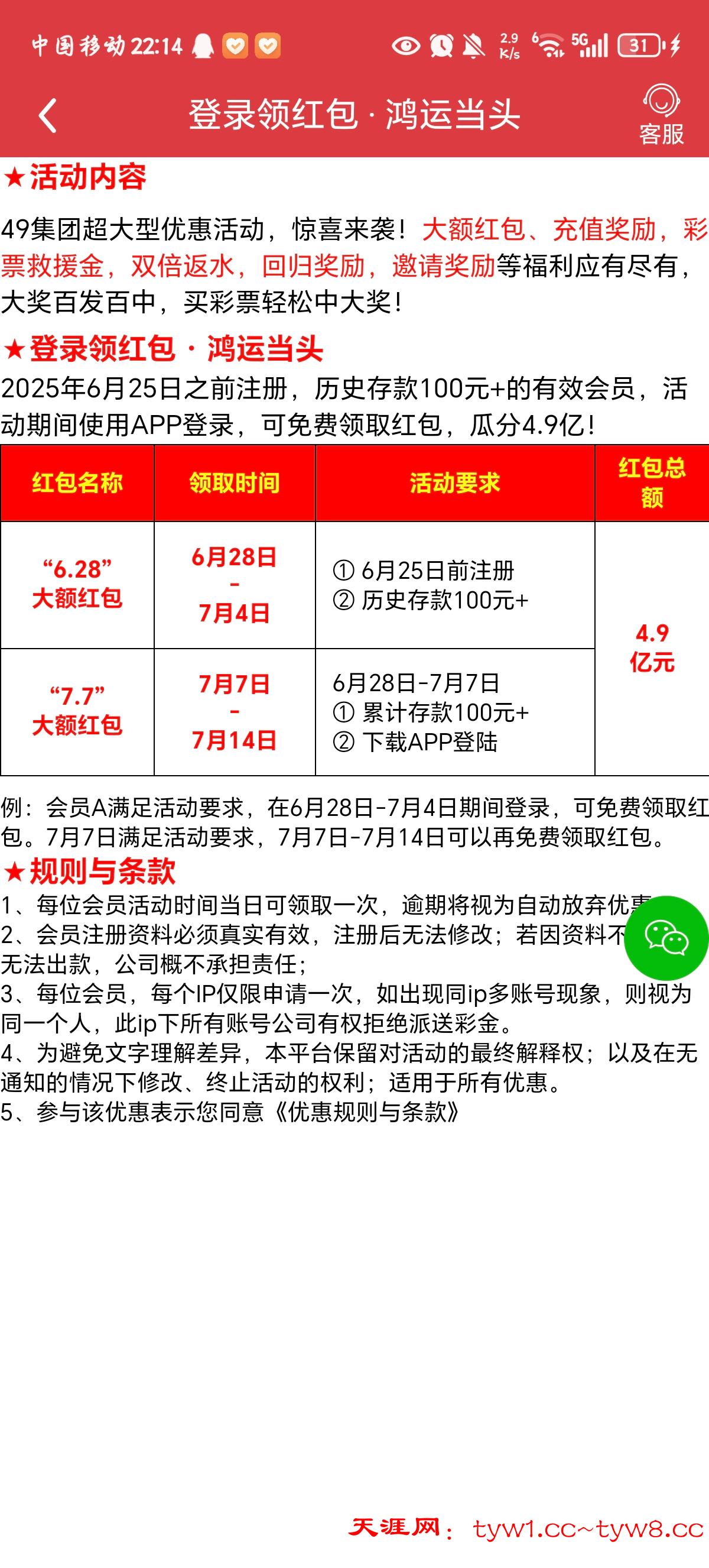 前面玩过49彩票的,今天登录明天领彩金(100包赔这个)